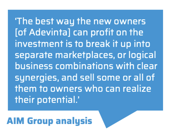3. Build logical business combinations to boost potential trade value. Throughout Adevinta’s short history, the goal has always been to build a marketplace giant with synergies between parts. But few synergies were found, teamwork between companies has been minimal, and smaller assets have languished with underinvestment.