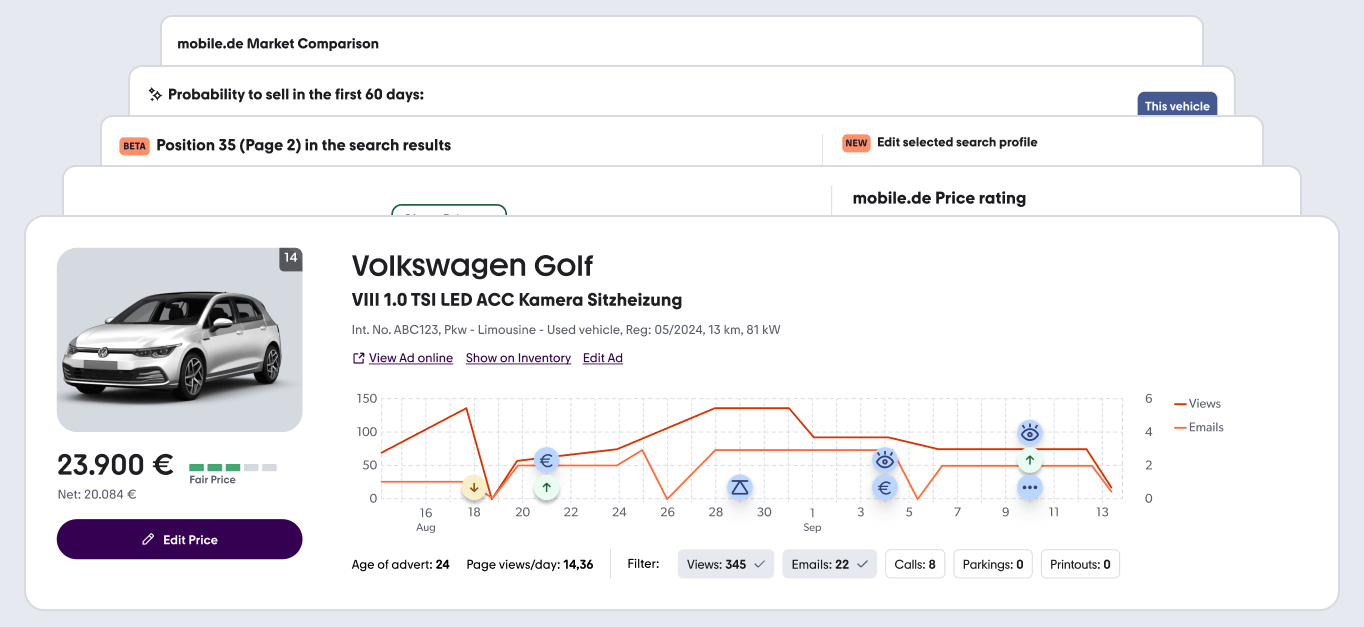 “With just a few clicks, dealers can identify low-performing inventory, spot demand trends or receive information on price rating changes — no need to calculate anything manually. It’s all done by AI, takes less than a minute and is fully customizable”, said CPO Christin Schink.